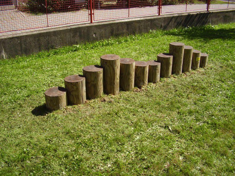 Popis zařízení: Kůly pro přecházení jsou vyrobeny ze smrkové středové kulatiny o 190 – 210 mm. Vše je tlakově impregnováno Wolmanitem CX 10 a zabroušeno do hladka. Horní řezné plochy jsou opatřeny 3x nátěrem Xyladecor Top Glazura v odstínu ořech. Spodní část je opatřena asfaltovým izolačním lakem RENOLAK ALN.
